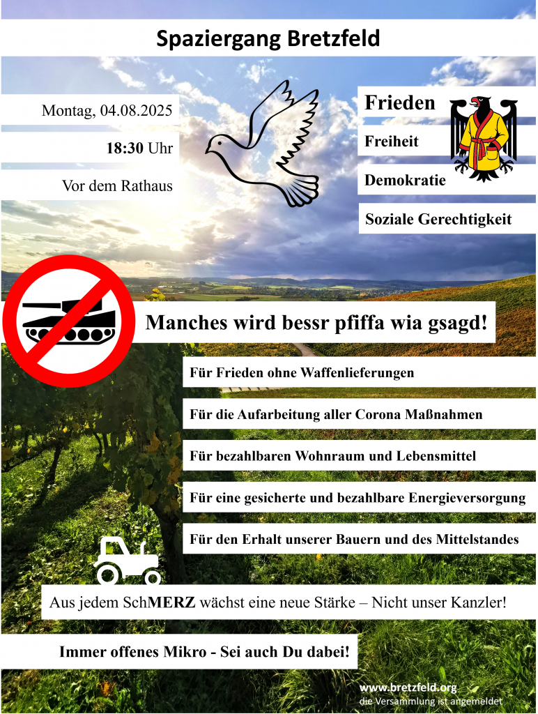 (Falls Ihr eine Trommel habt, oder trommeln könnt, dann einfach bei uns zur Planung melden spaziergang@bretzfeld.org)